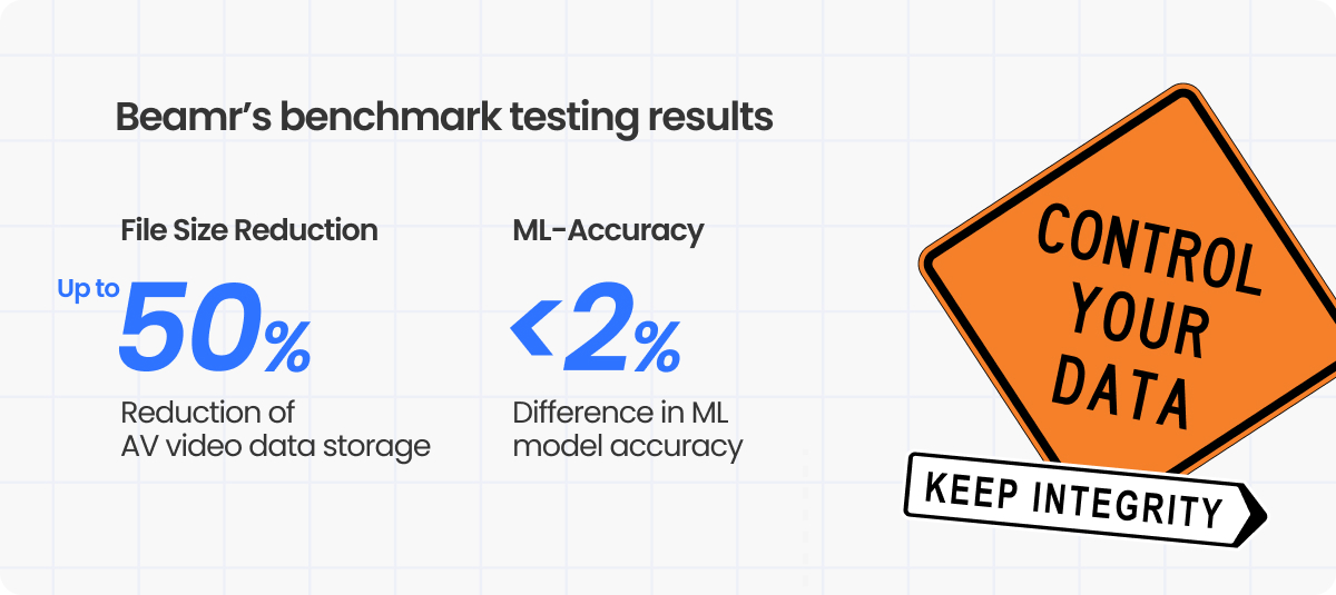 Generic video compression creates a fundamental dilemma for AV and ADAS teams, who are forced to choose between two undesirable outcomes: aggressive compression that risks degrading the very visual information that ML models depend on for accurate perception, or conservative approaches that fail to achieve meaningful storage savings. Because AV perception models are trained on high-quality datasets, they can be highly sensitive to any compression artifacts introduced by generic encoders.
