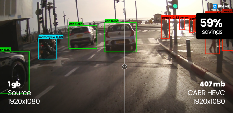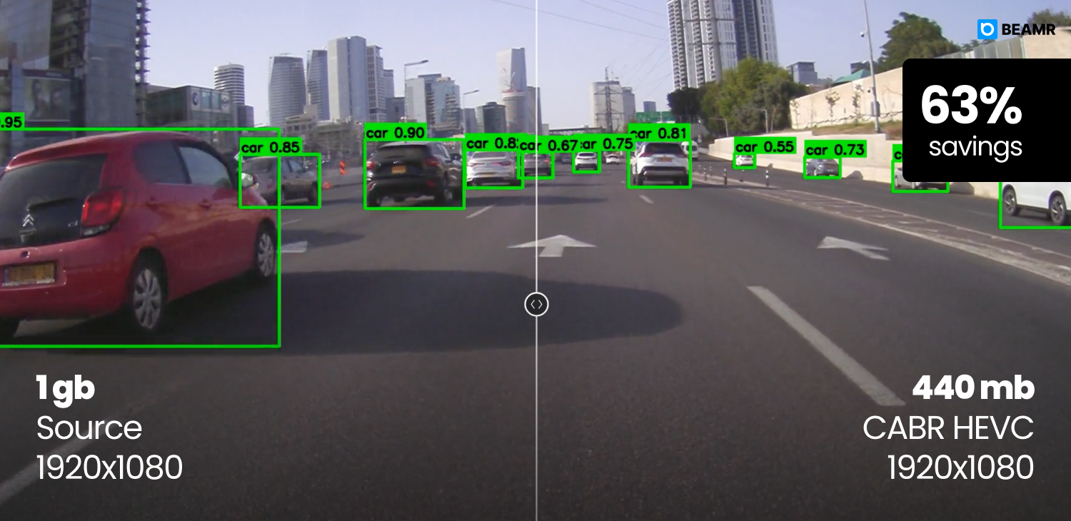 Object detection, classification, and prediction models depend on object boundaries, structural edges, and scene geometry – rather than the smooth gradients and color transitions that human viewers notice. Beamr’s Content-Adaptive Bitrate technology (CABR) addresses that by analyzing footage frame-by-frame, preserving the visual fidelity and cues that ML models rely on – unlike generic compression methods that result in very high data rates or degrade model performance.