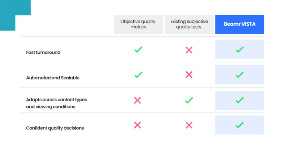 Beamr VISTA closes the gap between fast but limited objective metrics and reliable but unscalable subjective testing